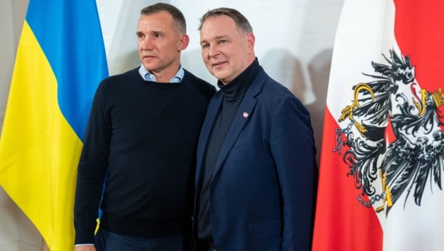 Genaue Details dazu seien noch in Ausarbeitung, so Pröll. Sobald konkrete Projekte fixiert sind, werde man damit an die Öffentlichkeit gehen, erklärte der Niederösterreicher. Der einstige Weltklassestürmer Schewtschenko („Ich bedanke mich bei allen Österreichern dafür, dass sie mein Land unterstützen“) hob die Bedeutung des Fußballs für sein kriegsgebeuteltes Land hervor. „Er bringt Hoffnung und ist auch eine Therapie für unsere jungen Leute, um schlechte Erfahrungen hinter sich zu lassen.“
